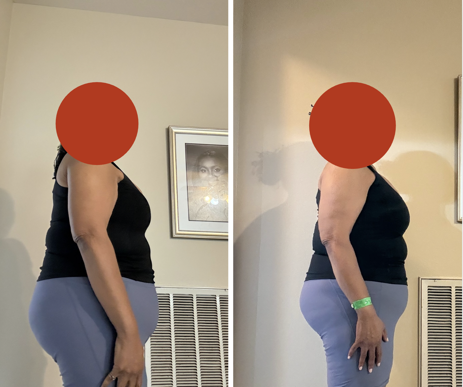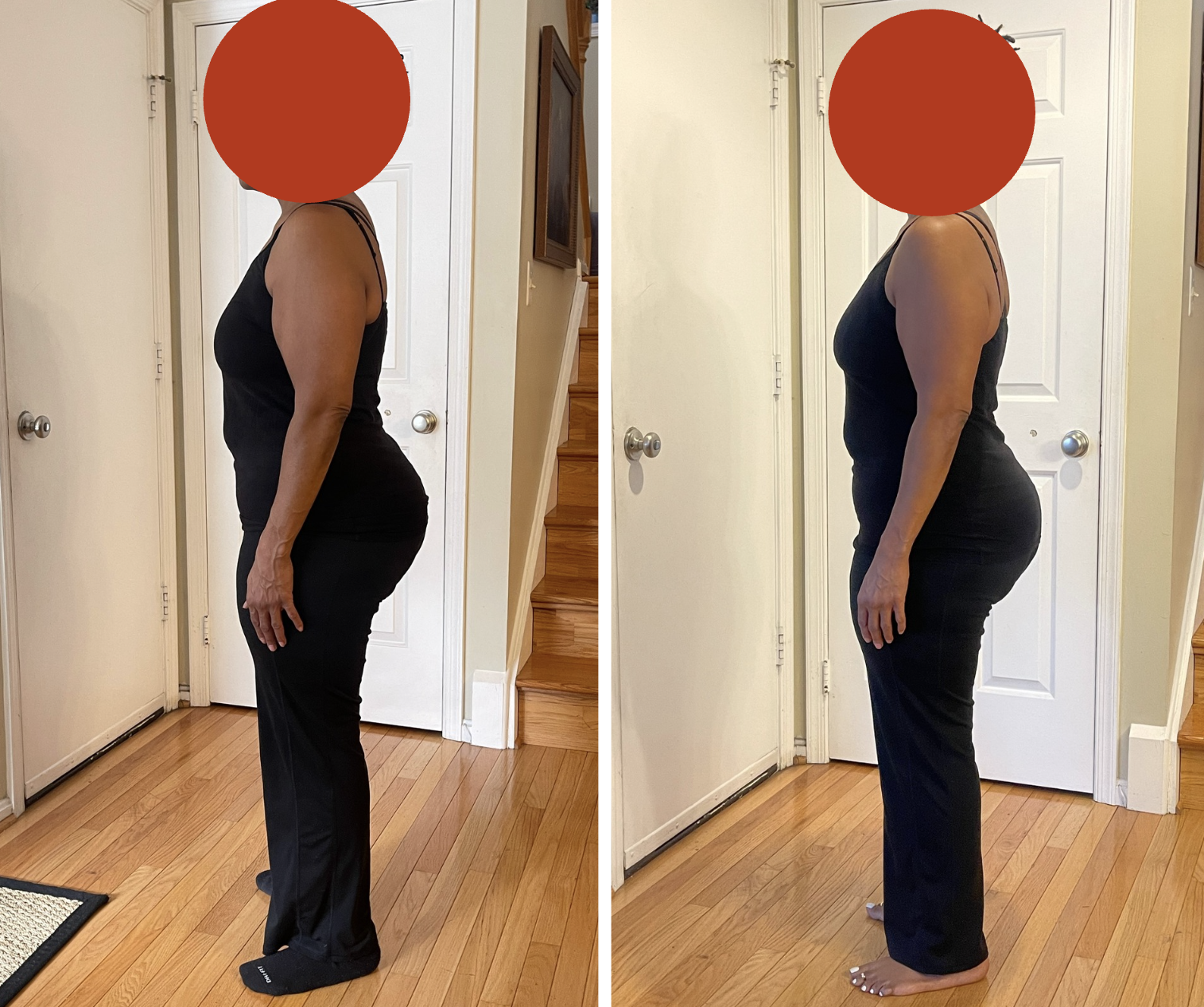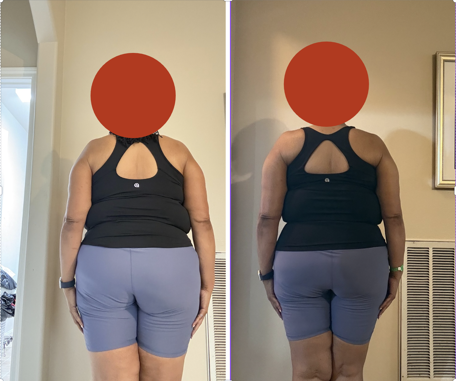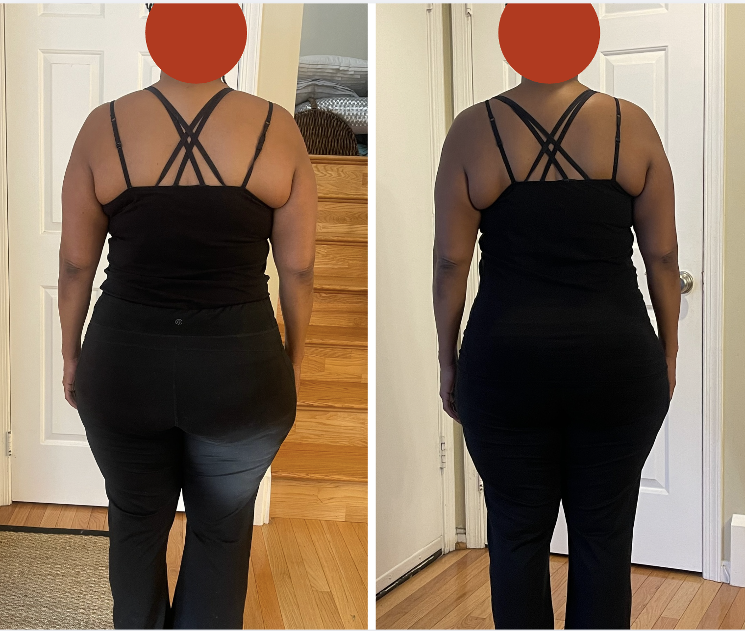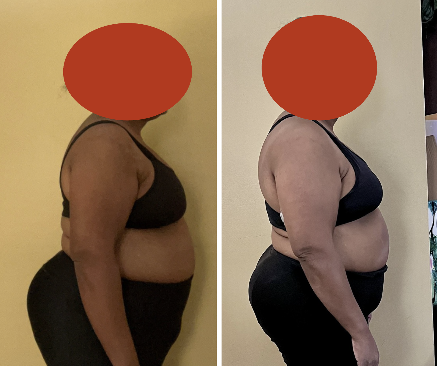 Client K: in 6 weeks, lost 8 inches overall and 9 pounds on the scale.