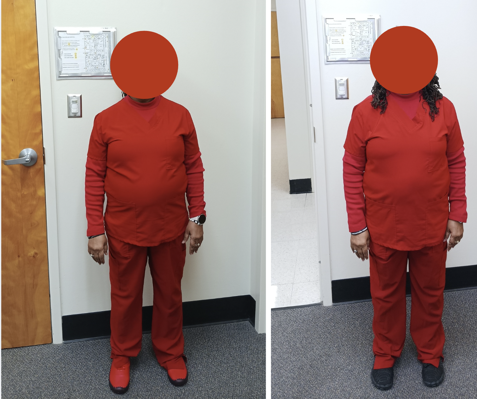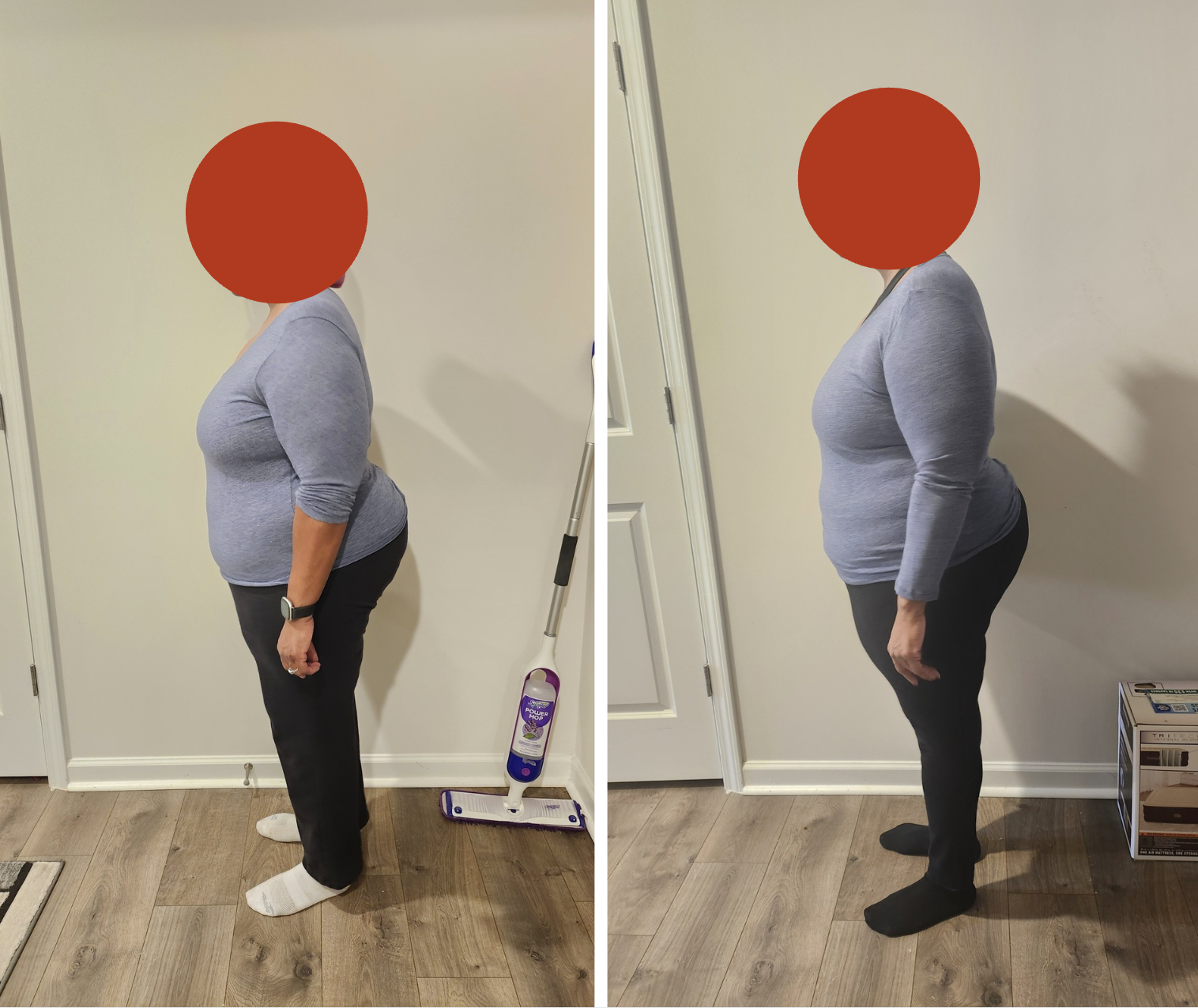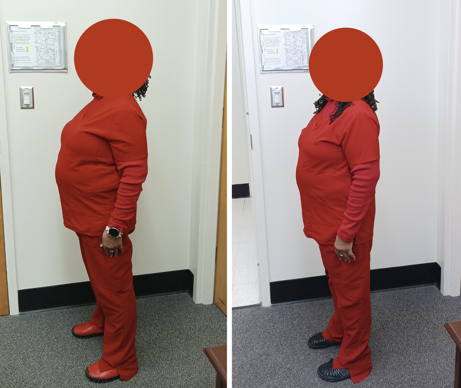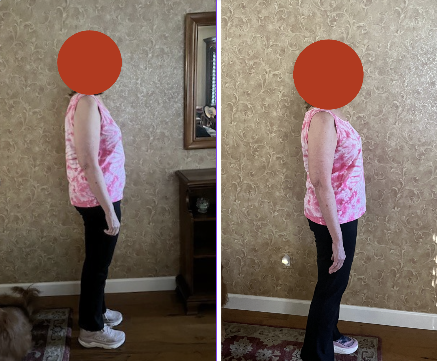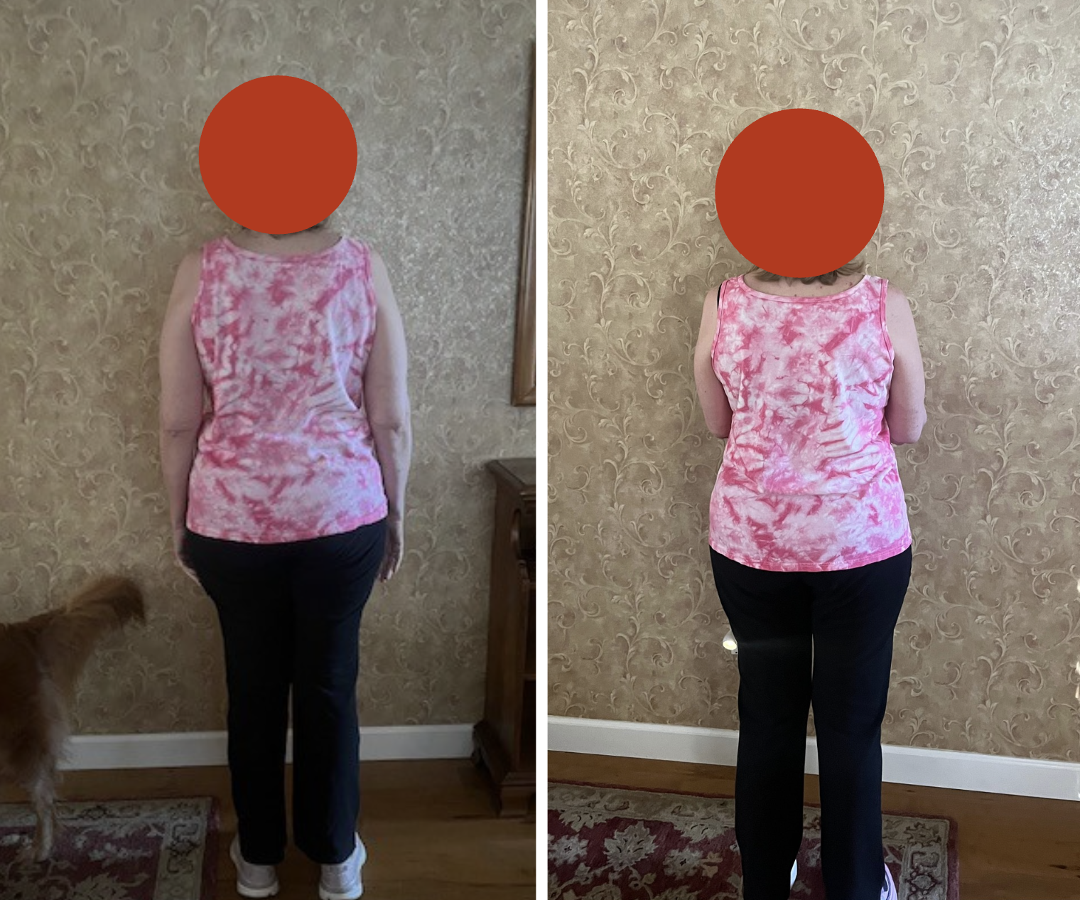 Client K: in 6 weeks, lost 8 inches overall and 9 pounds on the scale.